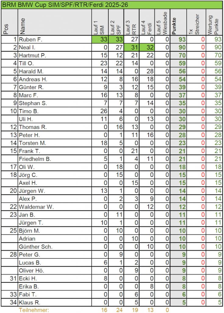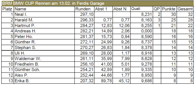 BRM BMW als Markencup, gefahren auf 5 Clubbahnen im Herzen Hessens. Reglement „BRM Youngtimer“, aber halt nur die BMW Modelle (Typ A, B und C)